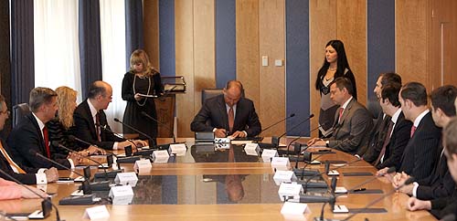 Vnesheconombank signed an agreement in Moscow today with a number of leading foreign banks on raising a syndicated loan worth 2.450 billion dollars. The credit tenure is 3 years. The credit rate is 6-month LIBOR+1.3% per annum. The transaction was closed with a significant oversubscription as Vnesheconombank initially planned to raise a loan of 2 billon US dollars.