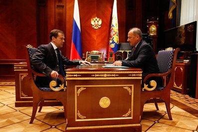Russian President Dmitry Medvedev Meets Vnesheconombank Chairman Vladimir Dmitriev