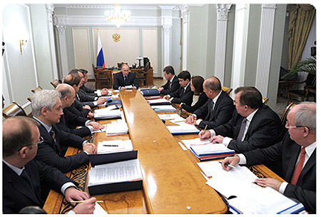 Good afternoon esteemed colleagues. You know that today a passenger plane has crashed near Tyumen killing tens of people. Before starting our work today I’d like us to observe a moment of silence to honor those killed. I’d like to ask authorities and once more the Ministry of Transport and the Ministry of Health and Social Development to do their utmost to help families of those killed and all those injured.