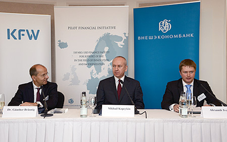 On behalf of Vnesheconombank the Agreement was signed by Member of Board - Deputy Chairman Mikhail Kopeikin and Deputy Chairman Alexandr Ivanov and on behalf of KfW – by KfW Bankengruppe Board Member Gunter Braunig.