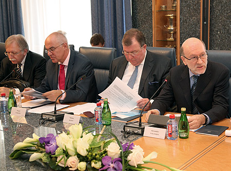 The British delegation was headed by Roger Gifford, the Lord Mayor of the City of London. The leader of the Russian delegation was Alexander Voloshin, Chairman of the MIFC Taskforce. Vnesheconombank was represented by Deputy Chairmen of Vnesheconombank - Members of the Board Sergey Vasiliev and Alexandr Ivanov. Deputy Co-Chairman of UK-Russia Liaison Group on MIFC, Chairman of the Board of the International Investment Bank Nikolay Kosov participated in the meeting as well.