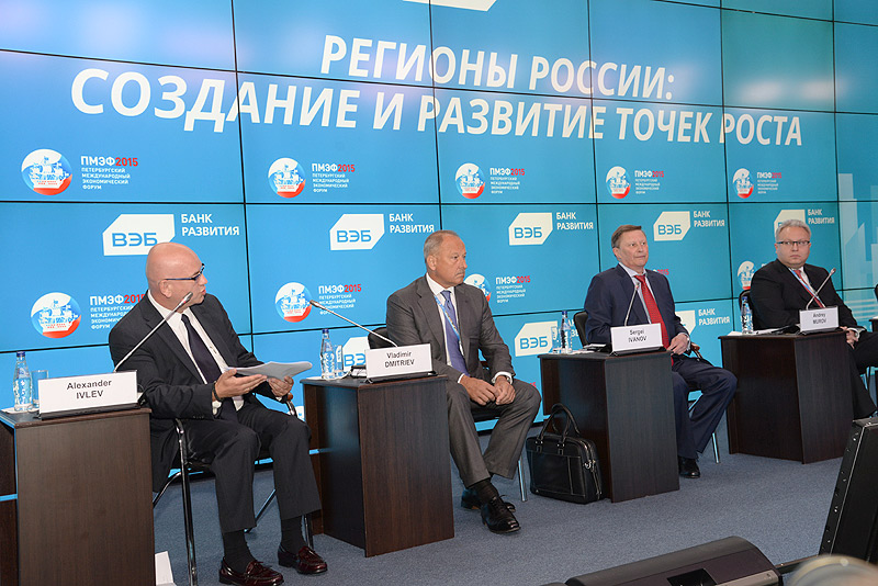 In the course of the Petersburg International Economic Forum-2015 Vnesheconombank Chairman Vladimir Dmitriev took part in a plenary session “Time to act: by joint efforts toward stability and growth”. He also spoke at a session organized by Vnesheconombank “Russia’s regions: creating and enhancing points of growth”.