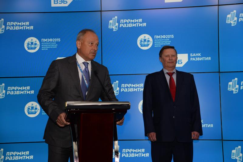 The Development Award ceremony was held as part of the 19th Petersburg International Economic Forum. The Award was instituted by Vnesheconombank. The awards were presented by Sergei Ivanov, Chief of Staff of the Presidential Executive Office of the Russian Federation, and Vladimir Dmitriev, Chairman of Vnesheconombank.