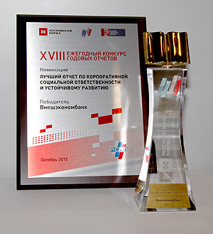 Vnesheconombank became the winner of the 18th Annual Report Competition in the category “Best Report on Corporate Social Responsibility and Sustainable Development”. The competition was organized by Moscow Exchange and Stock Market Media Group.