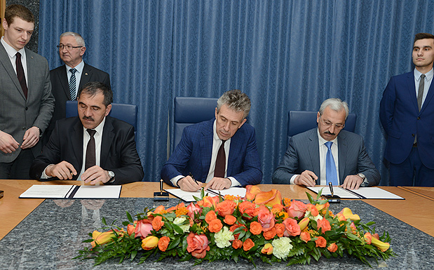 Vnesheconombank Chairman Sergei Gorkov, Head of the Republic of Ingushetia Yunus-Bek Yevkurov and Director General of Yuzhny Integrated Poultry Complex Adam Kostoev signed an agreement on cooperation.
