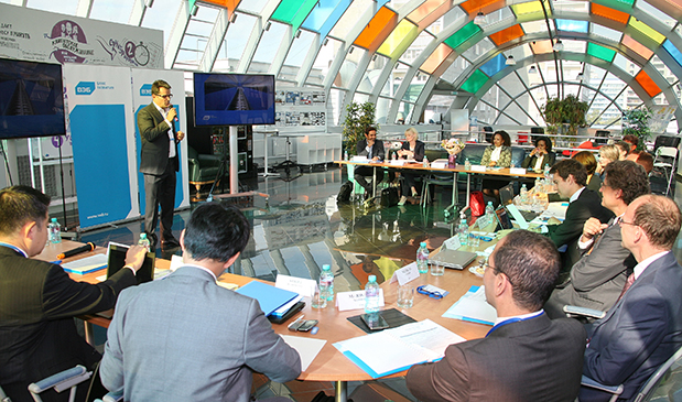 The event brought together 18 representatives from 11 international development institutions. The participants were addressed by Chairman of Vnesheconombank Sergey Gorkov. First Deputy Chairman of Vnesheconombank Nikolay Tsekhomsky highlighted Vnesheconombank’s updated strategy and specified the objectives facing the Bank in the near term. According to Mr. Tsekhomsky, VEB is constrained to operate in an unusual for development banks environment due to the American and European sanctions and, subsequently, is prevented from borrowing in major global markets. However, continued Mr. Tsekhomsky, VEB is set to be highly innovative and seek solutions that would help promote the Russian economy without increasing the Bank’s balance.
