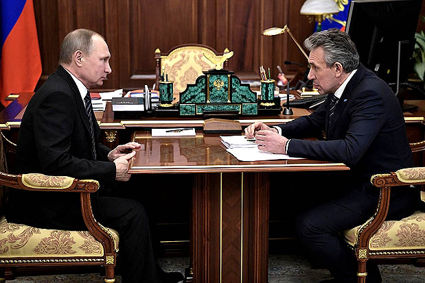 Russian President Vladimir Putin meets Chairman of Vnesheconombank Sergey Gorkov