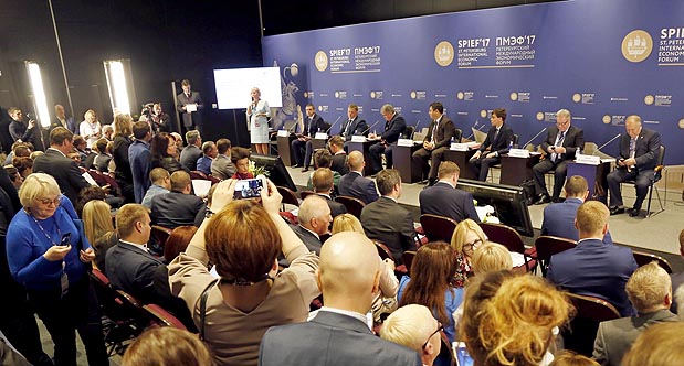 The discussion “Monotowns – New Opportunities for Business” was organized in conjunction with the third Russian Small and Medium-sized Enterprises Forum (SME Forum) on SPIEF’17 zero day. It was attended by more than 150 participants, including: governors, heads of single-industry cities, heads of federal executive authorities, development institutions, public and commercial organizations, as well as business representatives.