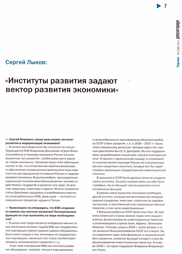 Сергей Лыков: "Институты развития задают вектор развития экономики"