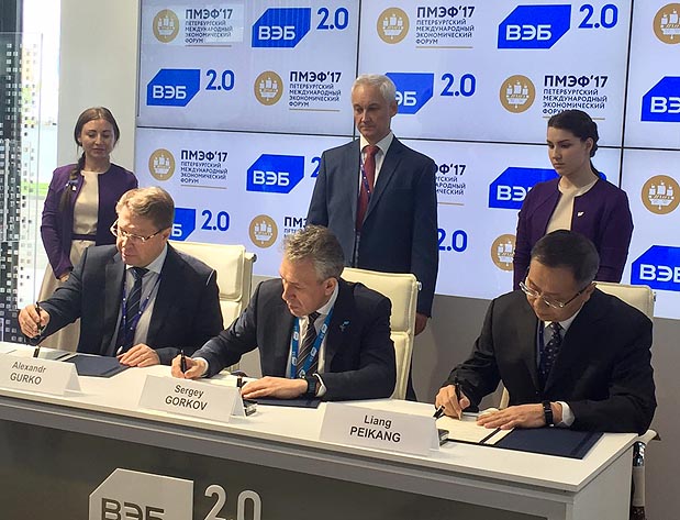 ВЭБ, Некоммерческое партнерство «Содействие развитию и использованию навигационных технологий» (НП «ГЛОНАСС») и китайская Группа компаний Norinco заключили на Петербургском международном экономическом форуме соглашение о сотрудничестве. Документ подписали председатель Внешэкономбанка Сергей Горьков, президент НП «ГЛОНАСС» Александр Гурко и президент «Северного электронного института» (входит в Norinco Group) Лян Пейкан.