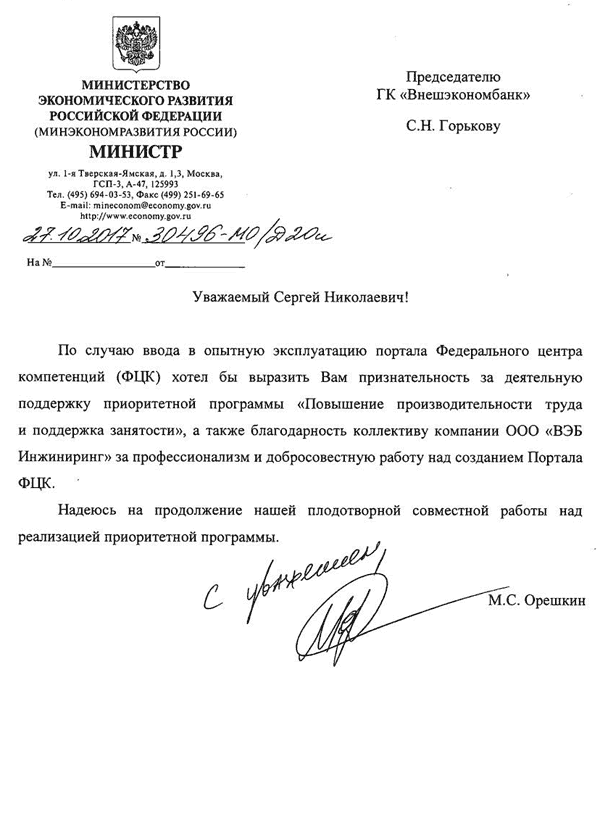 Внешэкономбанк и Министерство экономического развития Российской Федерации участвуют в проекте создания Федерального центра компетенций (ФЦК), который обеспечит реализацию приоритетной программы «Повышение производительности труда и поддержка занятости». Паспорт Программы утвержден по итогам заседания президиума Совета при Президенте России по стратегическому развитию и приоритетным проектам в августе 2017 года.