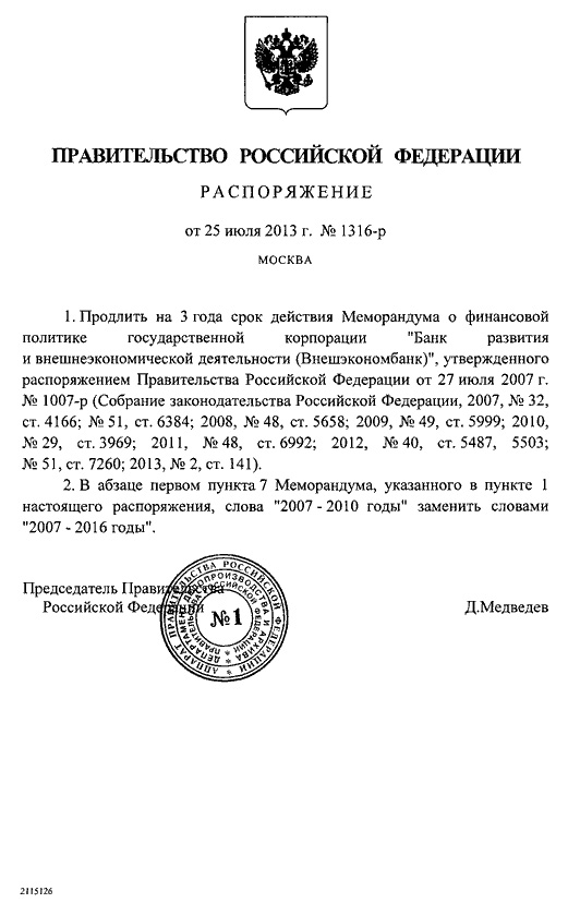 Продлен срок действия Меморандума о финансовой политике Внешэкономбанка