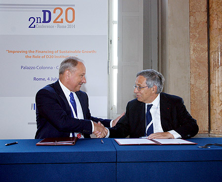 Участники встречи D20 приняли совместное заявление, отражающее их позицию по ключевым проблемам, связанным с деятельностью банков развития по финансированию инфраструктуры, по поддержке малого и среднего бизнеса, по предложению условий для специального отношения к банкам развития со стороны национальных регуляторов.