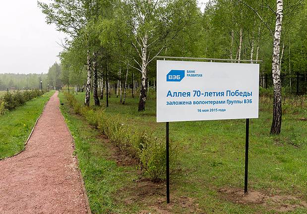 В рамках Всероссийской акции «Дерево Победы» 16 мая 2015 года на территории национального парка «Лосиный остров» около 400 сотрудников организаций, входящих в Группу ВЭБ, высадили саженцы сосны, липы и барбариса.