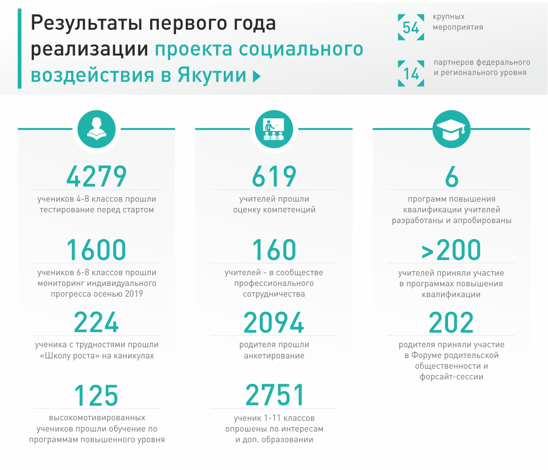 Проект социального воздействия «Повышение образовательных результатов учащихся Республики Саха (Якутия)» - это поддержанная Правительством Республики Саха (Якутия) инициатива ВЭБ.РФ, которая определяется потребностью в повышении конкурентоспособности человеческого капитала в Российской Федерации, необходимостью создания благоприятных условий и возможностей для самореализации и раскрытия таланта каждого ребёнка вне зависимости от того, проживает он в городе или в сельской местности.