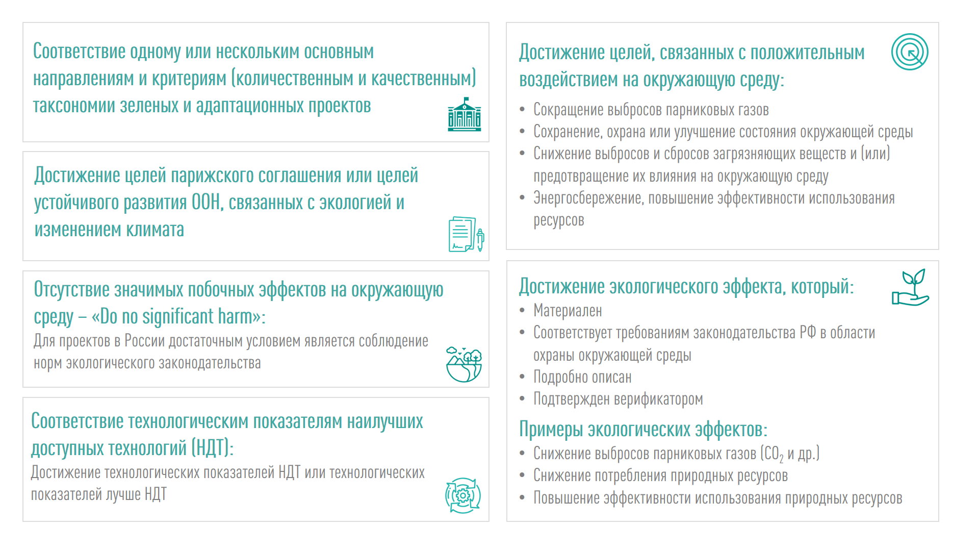 - заключения третьих лиц (например, органов по сертификации, и т.д.) о достижении показателей экологического эффекта от реализации проектов устойчивого развития, финансируемых за счет привлечения денежных средств посредством выпуска финансовых инструментов устойчивого развития (если показатели экологического эффекта требуют сертификации или иного подтверждения третьей стороной или если оно проведено по инициативе инициатора или оператора проекта устойчивого развития);